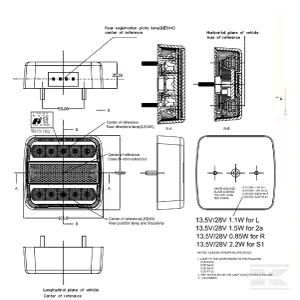 Rear light LED, square, 12/24V, 100x40x100mm Application: Universal Trailer Truck Construction vehicle Function: Tail light Direction indicator Position light Stop light Number plate light Reflection Suitable for: Universal
