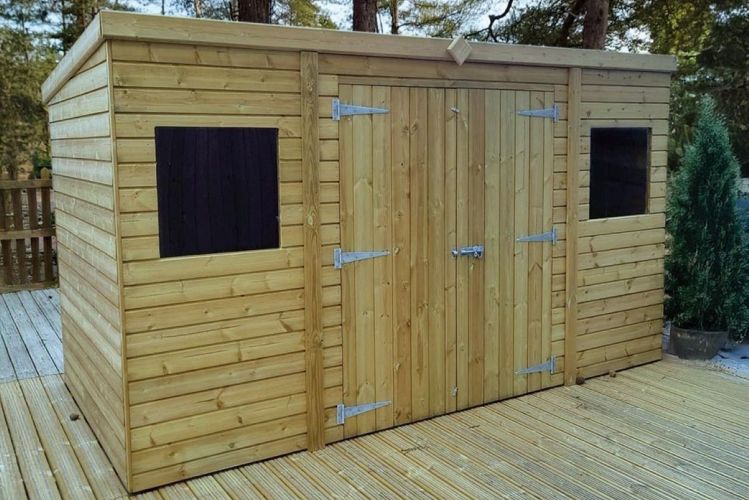 The shed includes double doors, offering easy access and ample space for storing larger items like lawnmowers, bikes, or garden tools. The doors are reinforced with heavy-duty galvanised ironmongery and stainless steel fixings, ensuring smooth operation and long-lasting durability.