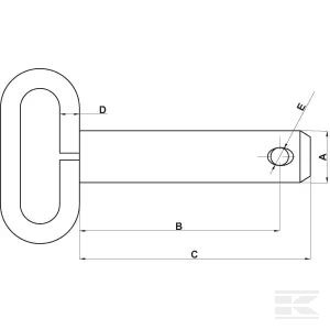 Pin outside diameter (A): 25mm Category: 2 Pin total length: 244mm Length (C): 174mm Distance from hole to head (B): 157mm Bore diameter (E): 6.7mm Finish: Black