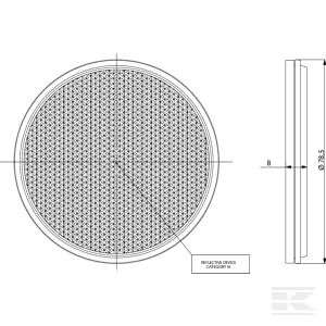 Self-adhesive round safety reflectors. Thickness: 8mm Diameter: 78mm Body material: Polymethyl methacrylate [PMMA] ABS Colours available: White; Amber or Red