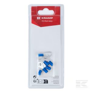Ring connector blue 1.5-2.5mm² Ø6mm, double strain relief. Min. cable cross section: 1.5mm² Max. cable cross section: 2.5mm² Type: Ring Connector Hole diameter: 6mm Colour: Blue Pack of 6