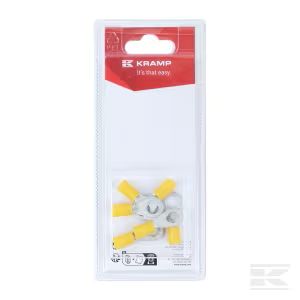 Ring connector yellow 4.0-6.0mm² Ø8mm, double strain relief. Min. cable cross section: 4mm² Max. cable cross section: 6mm² Type: Ring Connector Hole diameter: 8mm Colour: Yellow Pack of 6