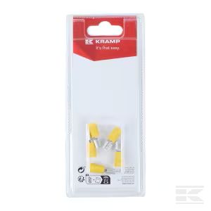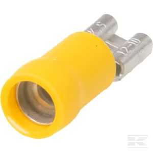 Blade terminal sleeve yellow 6.3×0.8mm², double strain relief. Min. cable cross section: 4mm² Max. cable cross section: 6mm² Connection type: Female Width: 6.3mm Thickness: 0.8mm Colour: Yellow