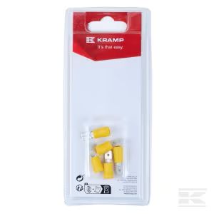 Flat tongue spade connector yellow 4-6mm². Min. cable cross section: 4mm² Max. cable cross section: 6mm² Connection type: Male Width: 6.3mm Thickness: 0.8mm Colour: Yellow Pack of 6