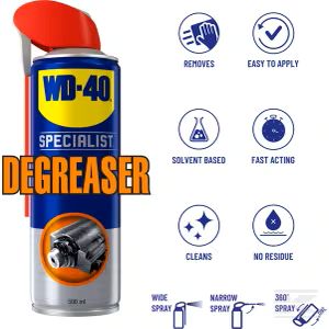 A technical spray from the specialist line of the WD-40® brand. The universal cleaner is a fast-acting degreaser that leaves no residue but quickly removes stubborn dirt, grease, oil and other grime.
