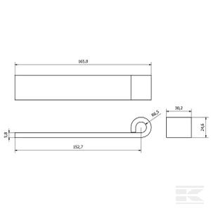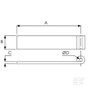 Weld-on straight hinge plate for trailers. Material: Steel, self colour Total length: 165mm Weldable length: 153mm Weldable width (B): 30.2mm Pin outside diameter (OD): 13.6mm Thickness (C): 5.8mm Distance from top to centre bore (A): 153mm
